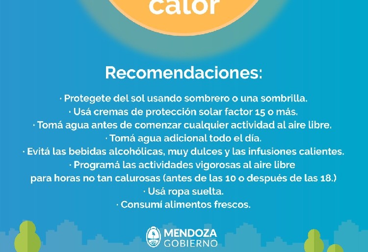 El Servicio Meteorológico Nacional ha pronosticado para Mendoza altas temperaturas para hoy, mañana y pasado, por lo que se avecina una “ola de calor” y es necesario tomar recaudos para mantener la salud.