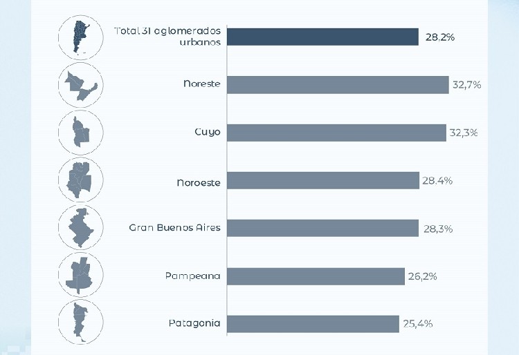En el segundo semestre de 2025, el 28,2% de los argentinos vivía en la pobreza, una cifra inferior al 31,6% del primer semestre, según datos publicados el martes por el Instituto Nacional de Estadística y Censos (Indec).