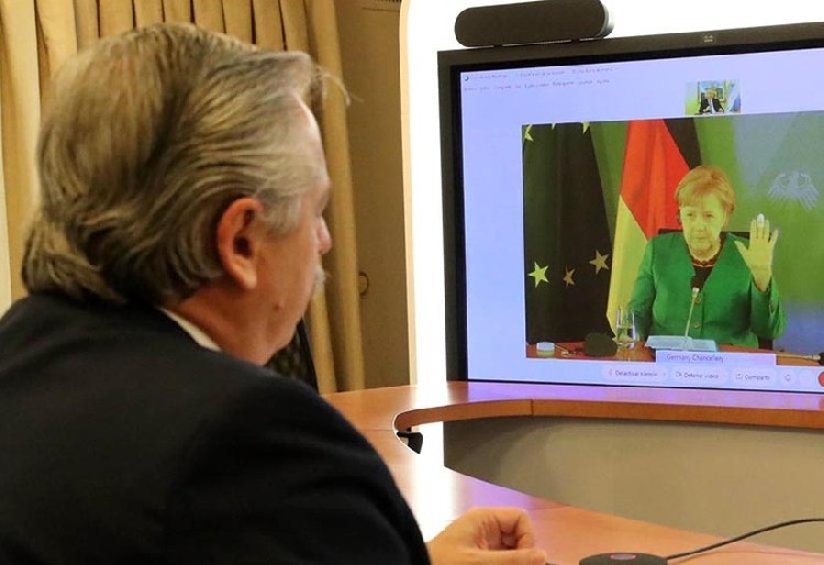 El presidente Alberto Fernández mantuvo este miércoles una videoconferencia desde la Residencia de Olivos con la canciller de Alemania, Angela Merkel, quien se comprometió a seguir apoyando a la Argentina en su planteo para el pago de su deuda con el Fondo Monetario Internacional (FMI), informaron fuentes oficiales.